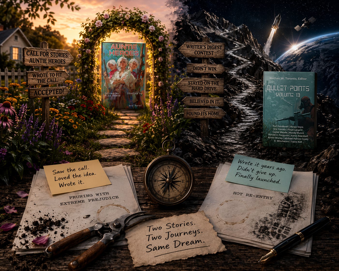 This story’s journey to publication was a bit longer. I originally wrote “Hot Re-Entry”—a speculative military fiction piece about an orbital instructor facing a catastrophic re-entry failure—years ago for a Writer’s Digest contest. It didn’t win, and like many stories, it sat on my hard drive for a while. But I always believed in it. I’m incredibly happy that it finally found the perfect home with Bullet Point Press, a publisher dedicated to the kind of mil-spec-fic I love to write. It’s a testament to the fact that a story’s rejection isn’t always the end of its road.